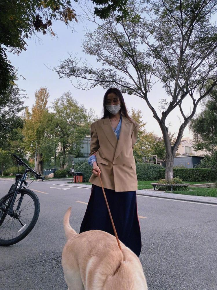 张天爱分享秋日最in穿搭!衬衫叠穿驼色西服,率性不失时尚感